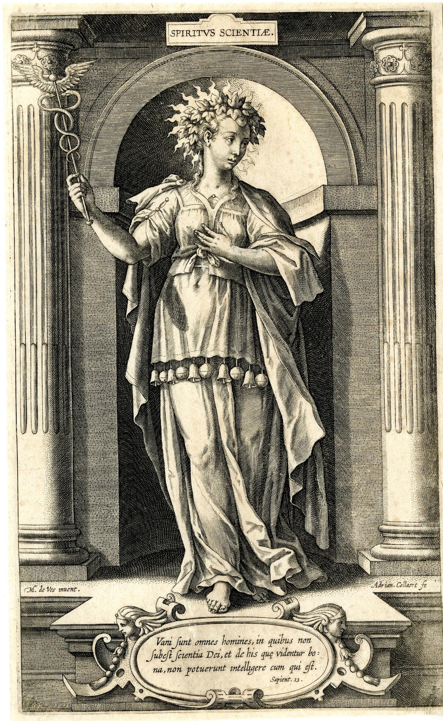 from the series Dona Spiritus S[ancti] (The Seven Gifts of the Holy Spirit), ca. 1595 [?]. Engraving. 25.1 x 15.5 cm. Lent by The New York Public Library, funded by the Kennedy Fund, the Miriam and Ira D. Wallach Division of Art, Prints and Photographs, The New York Public Library, Astor, Lenox and Tilden Foundations. New Hollstein 1062.